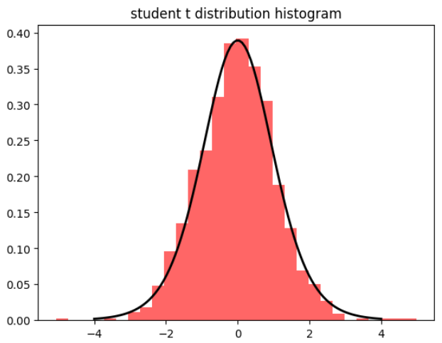plt.title('student t distribution histogram')